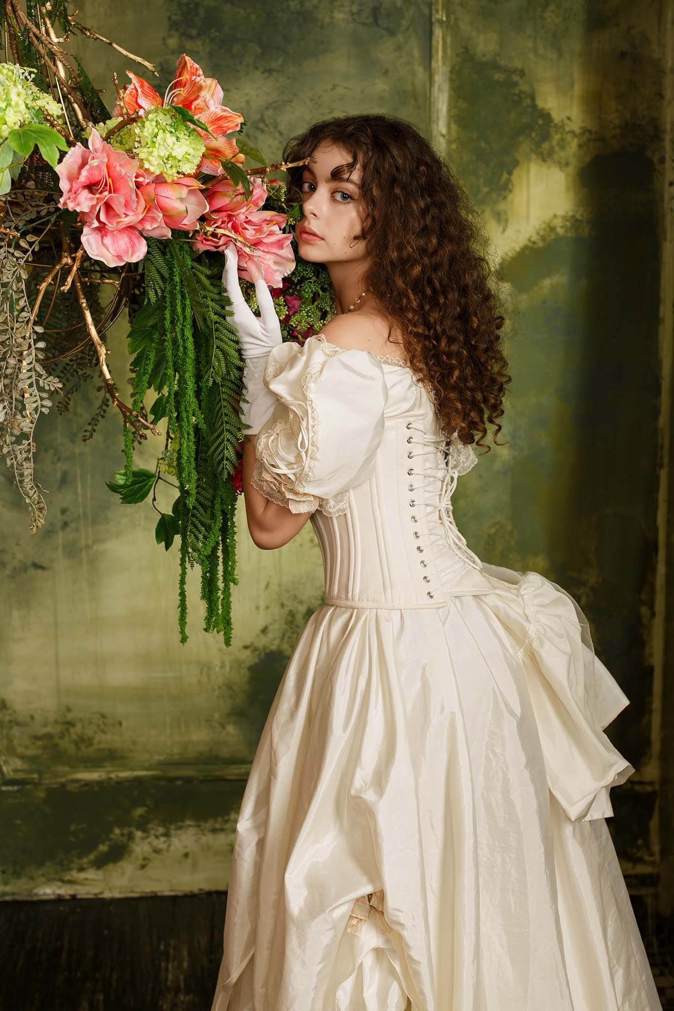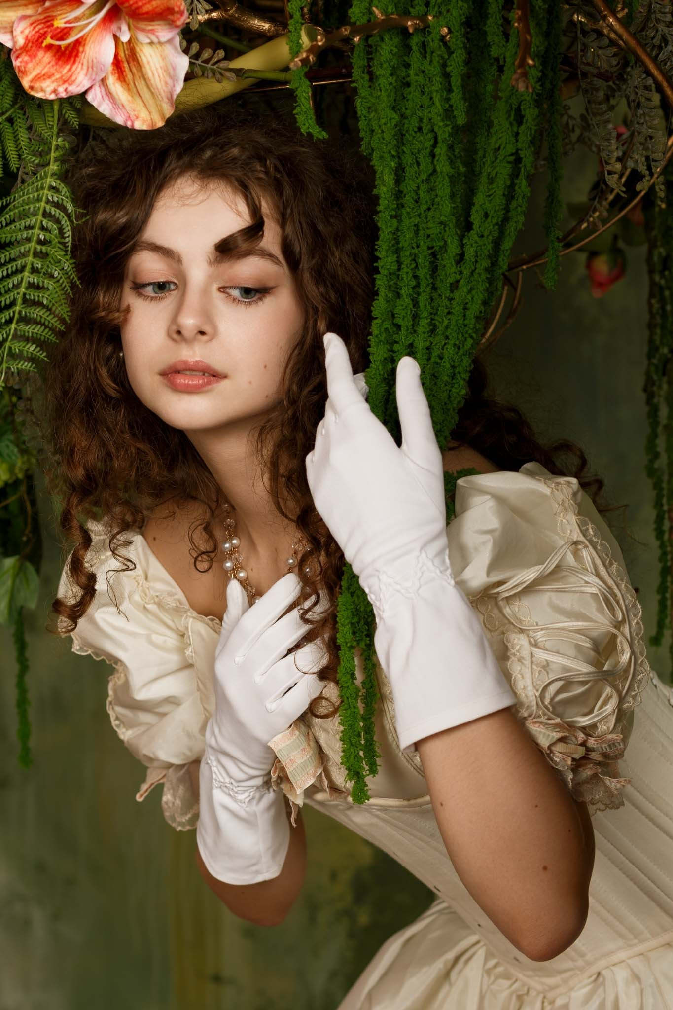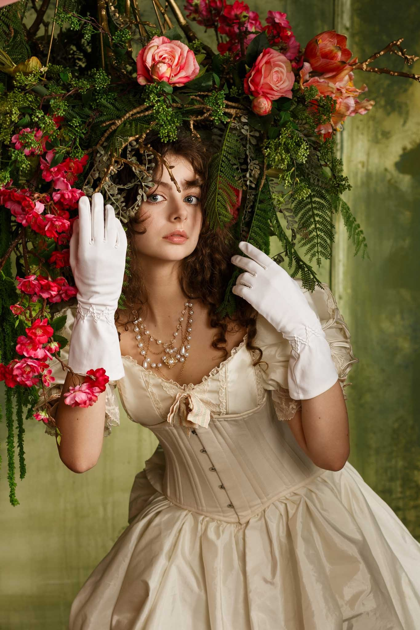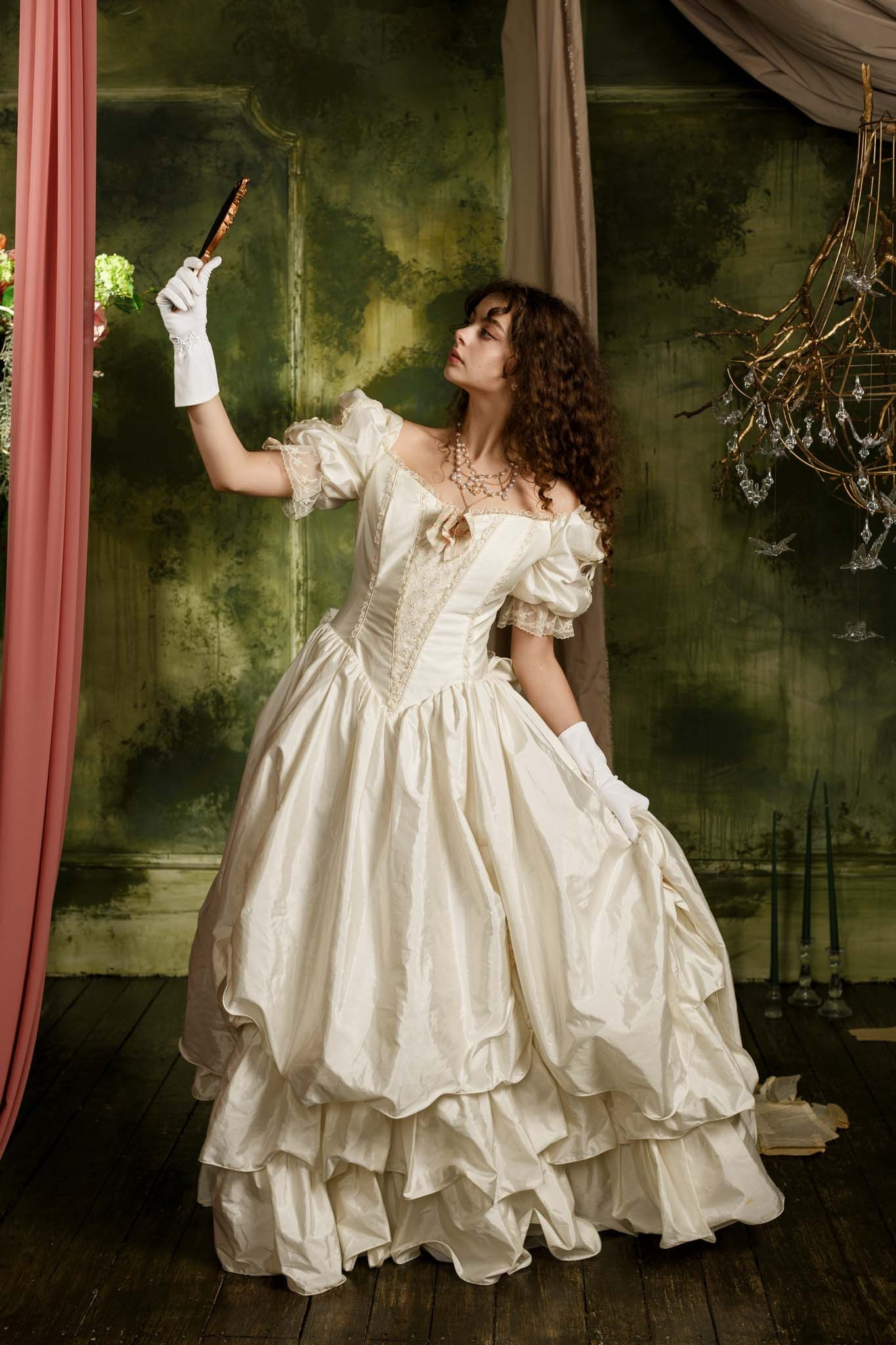 Ми вирішили створити твочу фотосесію про дівчину, яка любить читати класичні романи. За сюжетом, читаючи роман, вона поринає в свої мрії, тобто книжка слугувала порталом між реальністю та уявним світом. Для створення цього образу ми обрали фотостудію Ochi Project і сукню від Vintage Chic